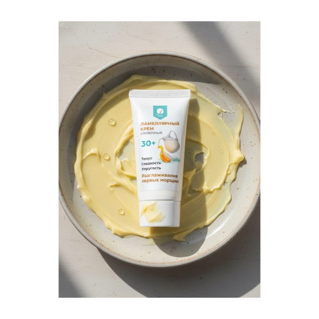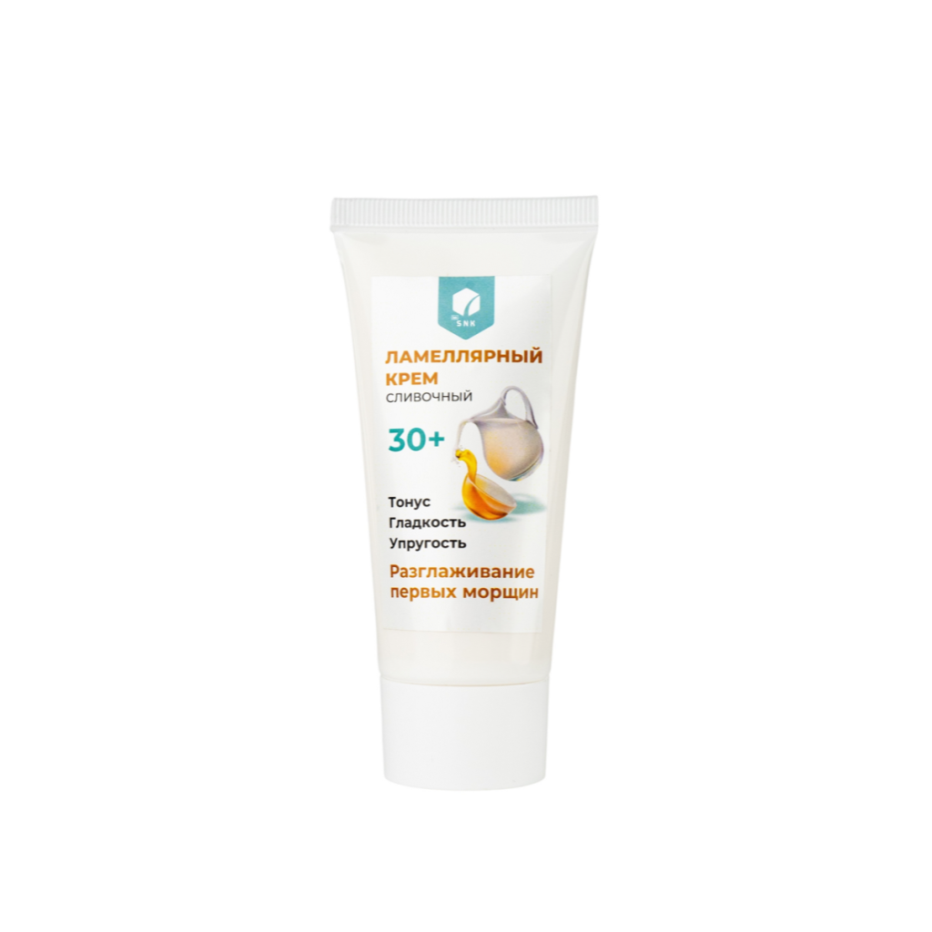 Крем, который как мама. Такое возможно? В ламеллярном креме BioSNK использовано сразу несколько технологий, максимально родственных коже. Культуральная среда лактобактерий поддерживает естественный микробиом. Когда биотический слой нашей кожи в порядке, на ее поверхности происходит множество полезных микропроцессов. Здоровая кожа сама справляется с воздействиями среды, воспаления купируются не успев проявится, шелушения и покраснения не образуются. Все процессы происходят в дружественной среде, микробиом работает. В большинстве продуктов BioSNK мы реализуем именно этот подход – помогаем коже быть здоровой. Ламеллярный крем BioSNK еще более физиологичен. Для его создания использованы пробиотики + технология ламелей или пластин, для формирования самой массы крема. Ламеллярная текстура повторяет естественное распределение липидов нашей кожи. Нанесение крема перестает быть микро стрессом в ходе которого необходимо преобразовать структуру поступивших веществ. Нанесение ламеллярного крема похоже на поглаживание, поддержку естественных липидных форм. Благодаря этому, не приходится долго ждать пока крем «сядет» и впитается. Естественное распределение сразу дает ощущение ухоженной кожи. Третьей родственной кожи технологией в ламеллярном креме BioSNK являются ….сами липиды. Основным их источником выбрали масло Гхи, которое называют золотом Аюрведы. Клетки молока, а масло Гхи это обработанное особым образом масло из обычного коровьего молока, способны питать и стать строительным материалом всех клеток живого организма. Дополняет липидный комплекс растительный сквалан, омега-кислоты из масла рыжика. Для стимуляции обменных процессов, в состав крема введены тонизирующие компоненты. Экстракт софоры японской — источник флавоноидов, в том числе рутина. Укрепляет капилляры и освежает цвет лица. Экстракт трепанга (морского огурца) добавляет антиоксидантные свойства, работает на тургор кожи и сохранение молодости. Сливочная текстура крема цвета топленого молока подчеркнута ароматом ванили. Комфортный и окутывающий как кашемировая шаль, крем ламеллярный BioSNK гармонично встроится в любой уход. Для комбинированной кожи рекомендовано применение раз в несколько дней, в качестве восстановления липидной мантии. Для сухой кожи подойдет ежедневное применение. Для нормальной – как база для массажа и ночной крем.